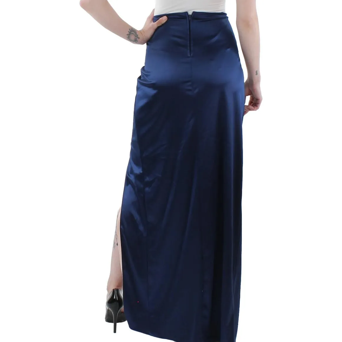 Juniors Satin Side Slit Maxi Skirt