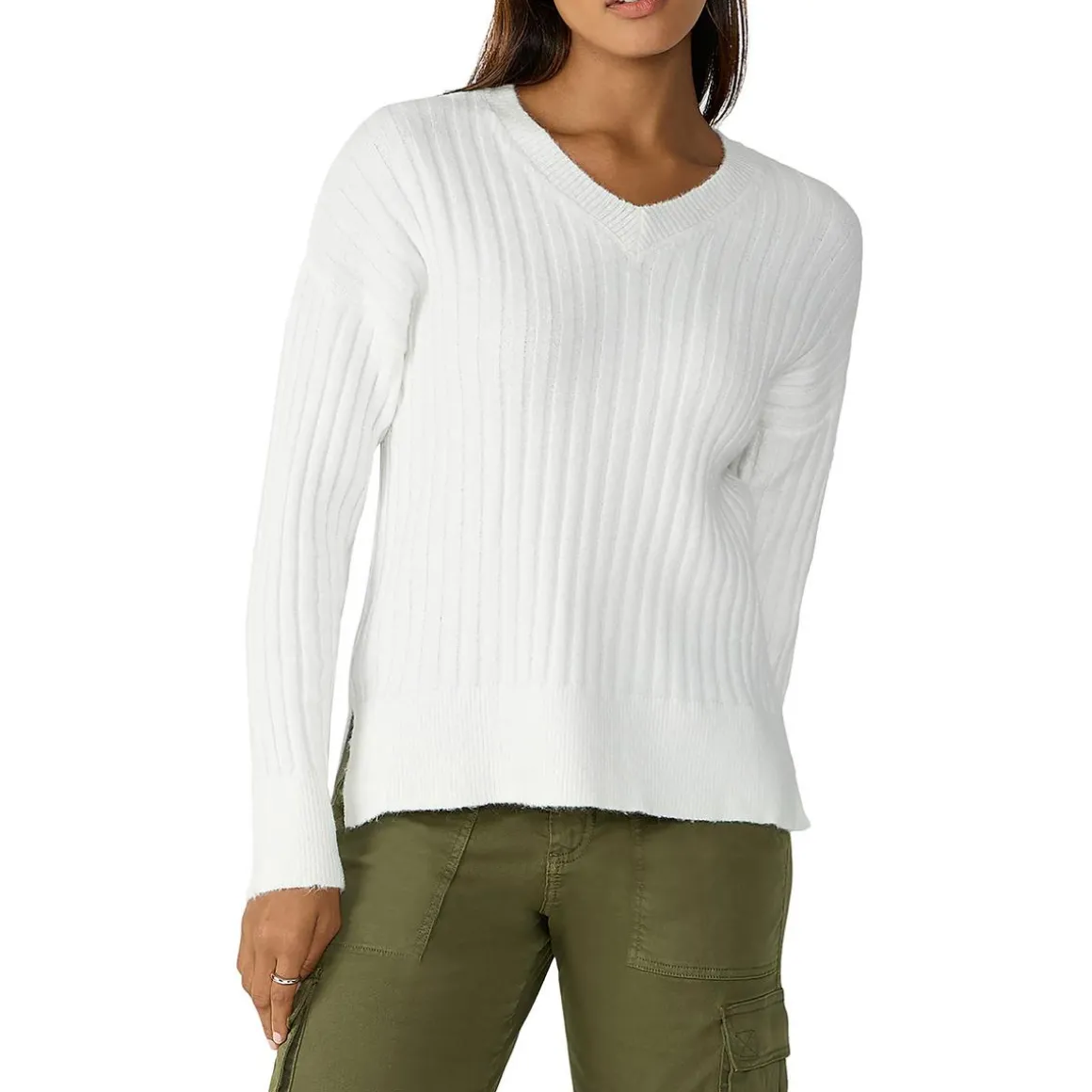 Ribbed V-Neck Pullover Sweater